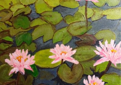 I completed by share of art projects alongside my children, sewed holiday outfits and Halloween costumes, did artwork for community groups and our church. It was fun to create unique one of a kind art works to gift to family and friends too. As the children got older and I had a bit more time to myself, I took a refresher painting course through the Hamden Arts Commission. The instructor, the late Charles C. Gruppe said to me, “Why haven’t you been painting for so long?” I replied, “4 little interruptions.” He laughed heartily.