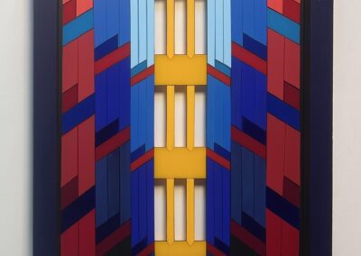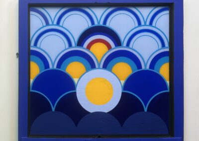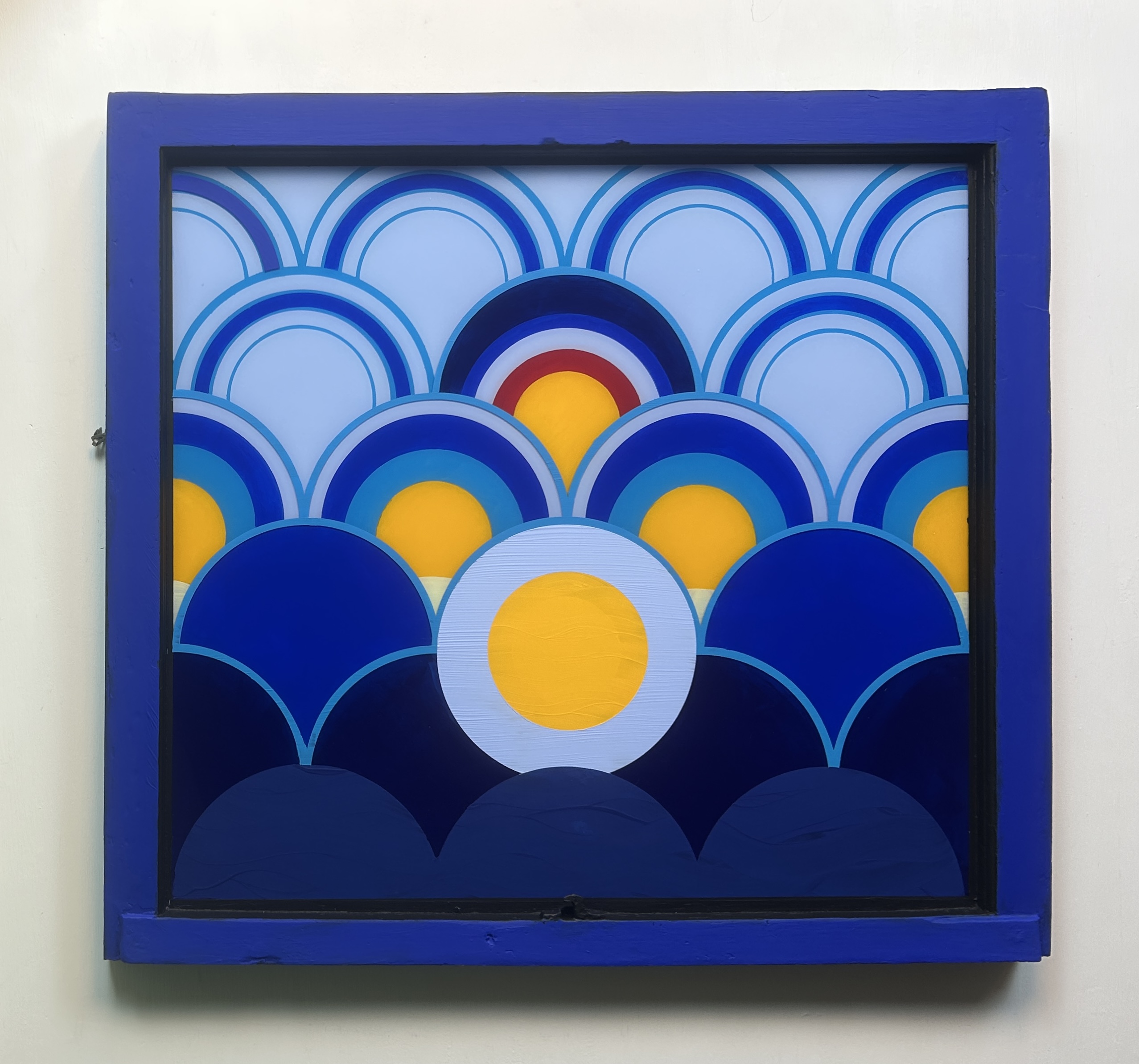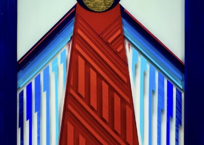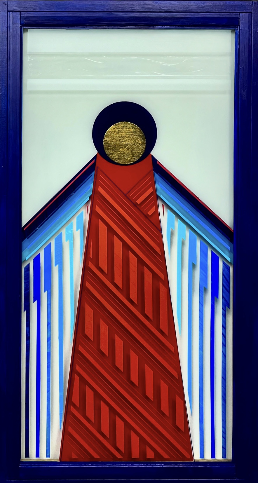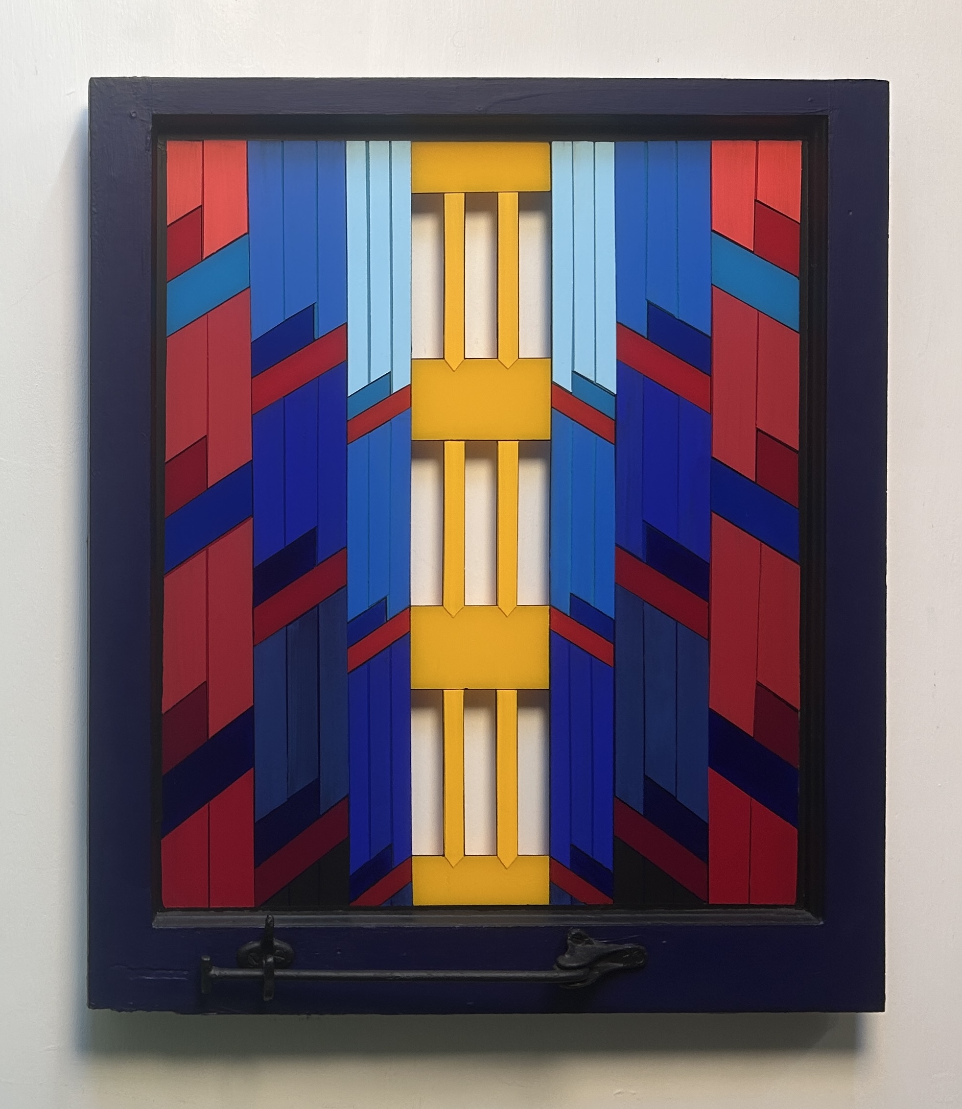 Eddie Hall is a self-taught abstract artist based in Berlin, Connecticut, known for creating vibrant, geometric works using recycled windows as his canvas. Drawing inspiration from architecture and design, his art transforms discarded materials into bold visual narratives. Hall is a member of the Kehler Liddell Gallery and the Silvermine Guild of Artists, and his work has been featured in solo and group exhibitions at institutions including the New Britain Museum of American Art, Mattatuck Museum, Hill-Stead Museum, Mystic Museum of Art, Edward Hopper House Museum, Slater Memorial Museum, Scope Miami, and many others. He has received numerous awards and his work is held in the permanent collection of the New Britain Museum of American Art and Central Connecticut State University and currently on display at the Connecticut State Capitol Building. Hall is currently pursuing the impossible goal of exhibiting at every library in Connecticut.